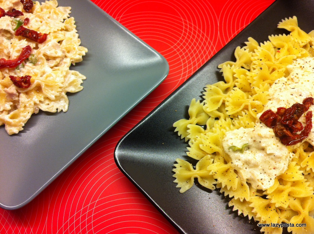 Mix and serve, or serve with the sauce and some sliced sun-dried tomatoes on top. Perfect!