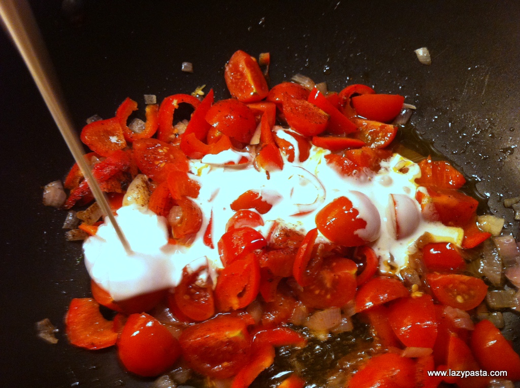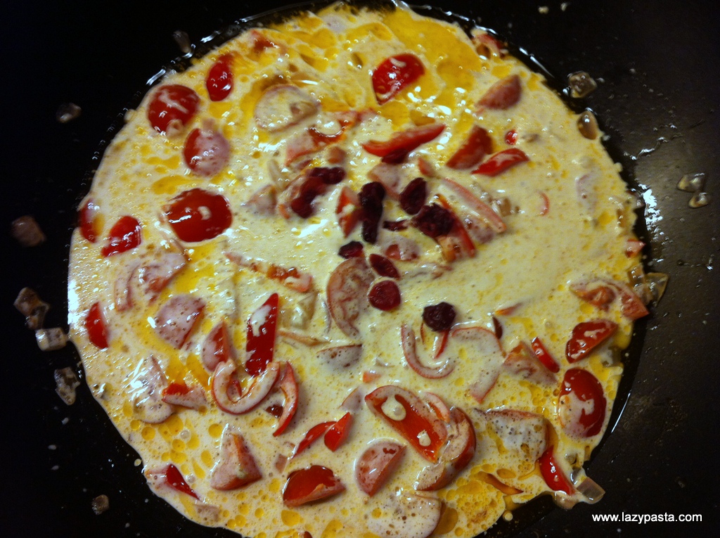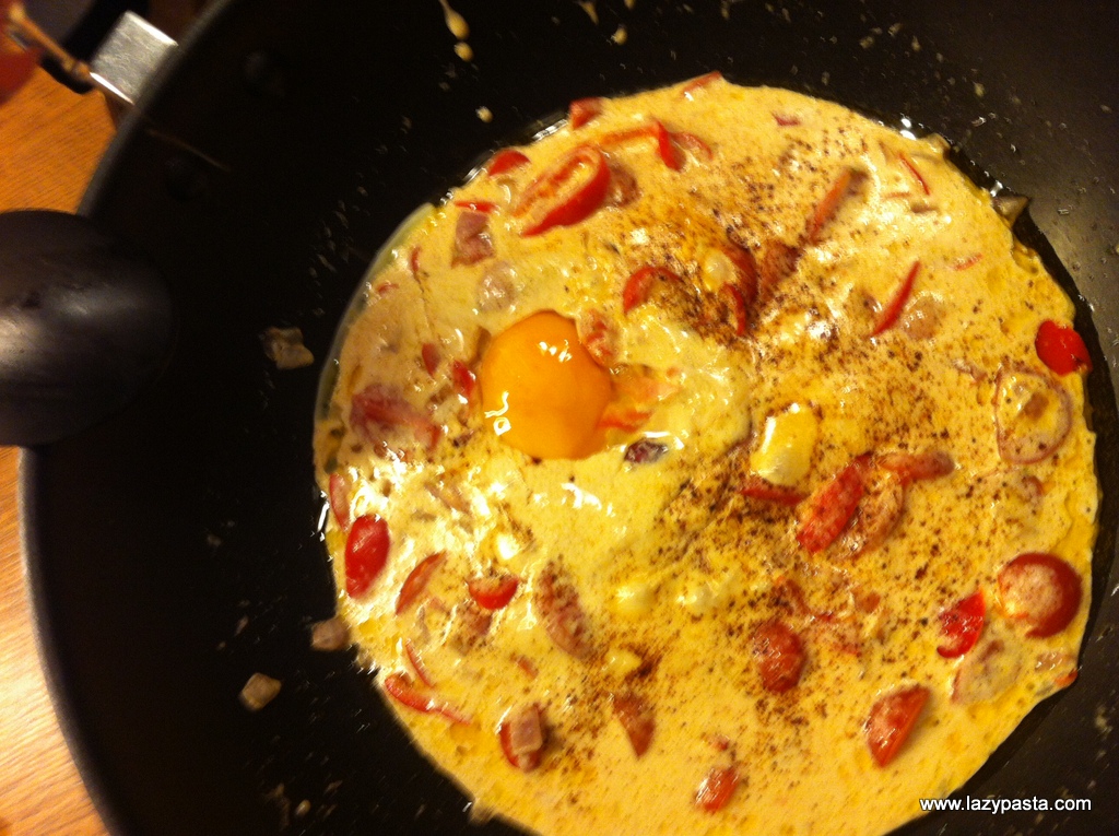 One would normally expect a recipe with a tomato sauce, but these tasty and aromatic red ingredients couldn’t wait to dive in a symphony made of cream and an egg.